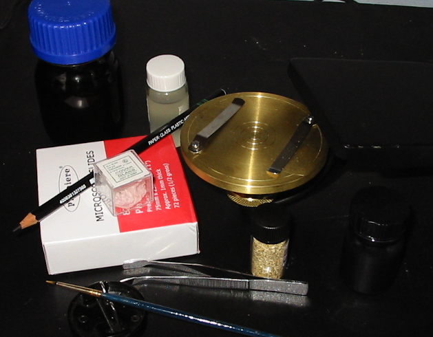In this case, objects of the second variety are being utilized; specifically microfossils, but any other items failing into the same category may be used. Due to wide availability and comparatively large size, microfossils, micrometeorites, and other similar objects are an excellent first choice for one not yet acquainted with the technique. Whatever is selected, first see that it is prepared for mounting by ensuring it is totally dry and devoid of contaminating debris.