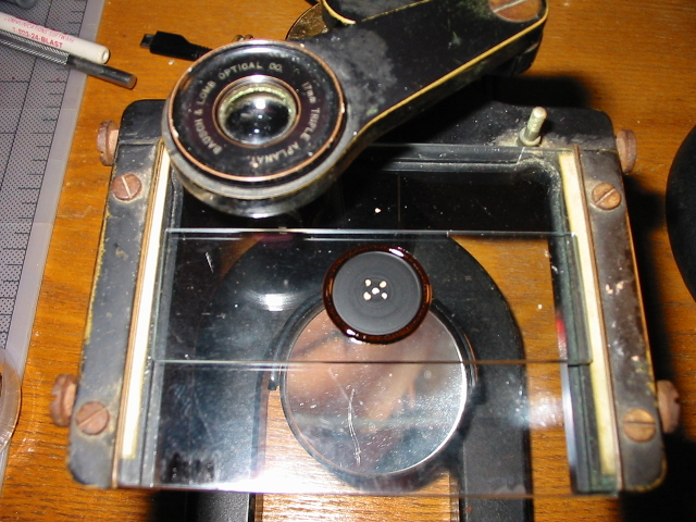 A petri dish, watch or Syracuse glass is useful for laying out objects. Select a quantity of objects which are of a size to fit beneath the cell vertically and lay them out (on a handy surface) in a pleasing or utilitarian way horizontally. Place the slip (with cell) near to the surface on which the specimens have been lain out; some will find a dissecting microscope or loupe useful if inherent vision merits. An old style dissecting microscope may be found suitable, as one may easily move the lens aside when it is not required.