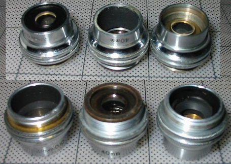 None of these objectives are marked with their explicit magnification.