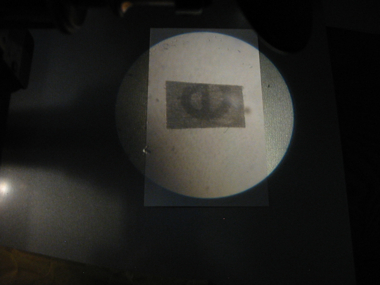 The illuminator with frosted household bulb and ground glass Corning Day-Light filter.