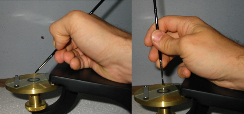 - Prepare a focusing assist, it may be anything from the tip of a sharpened pencil to a dissecting needle. I prefer a small point of card stock with a lightly gummed back.